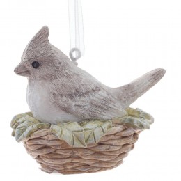 Игрушка елочная Птичка Кардинал в гнезде пластик 6 см